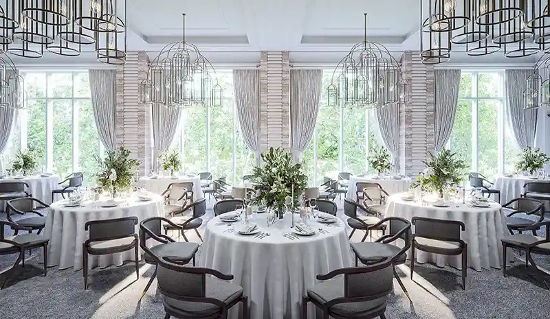 館內的餐廳以船上甲板為概念設計,挑高而開放的空間配上港邊景色,用餐時能感受到橫濱港獨有的悠閒節奏。酒吧則在東西方元素之間遊走,帶著復古氣質,適合夜裡喝一杯、慢慢回顧這一天的海風與街景。更特別的是,酒店還規劃了教堂與宴會空間,紅磚牆與木質結構搭配自然採光,讓婚禮或派對多了一層老建築的溫度,而宴會廳面向庭院綠意,很適合舉辦活動或重要聚會。