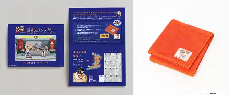 這次的重頭戲是佔領大阪熱門錢湯「Utopia 白玉溫泉」!門簾和澡堂畫全被《街頭霸王II》的風格霸氣改造,化身超有回憶的遊戲浴場。走進大廳,特別訂製的遊戲機台等著你挑戰,還有以愛泡澡的相撲角色「本田」為主題的視覺裝飾,讓整個空間充滿街頭霸王的夢幻氣息!更令人期待的是,大阪府內約160家錢湯也將掛上原創暖簾,還有巡遊蓋章活動,讓你邊泡邊蒐集樂趣,絕對是錢湯新體驗!