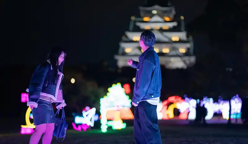 白天的大阪城總是旅客如織,但夜晚的「大阪城燈光秀」卻將這座歷史名城變成一個光影奇幻世界。以天守閣為背景,西之丸庭園披上燈火新裝,帶來截然不同的視覺享受。今年最大的驚喜是「戰國武將甲冑」燈飾,以豐臣秀吉的得力部將加藤清正、福島正則、石田三成、真田幸村、前田利家,以及德川時代的關鍵人物本多忠勝為靈感,透過鮮豔光影重現他們的傳奇風采。