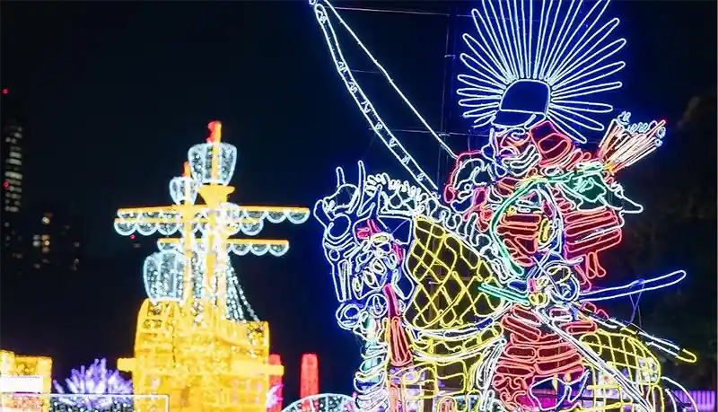 除了壯觀的武將燈飾,園區還新增了「燈籠迴廊」,無數溫暖燈籠沿著小徑綻放光芒,邀請你漫步其中,邊欣賞大阪城夜景,邊沉浸在濃濃的日式風情中。延續去年的「大阪觀光地系列」更是亮點,通天閣、神社佛閣、懷舊路面電車和熱鬧市場等經典場景以繽紛燈光再現,讓你一夜之間遊遍大阪的經典風貌,彷彿置身城市縮影!