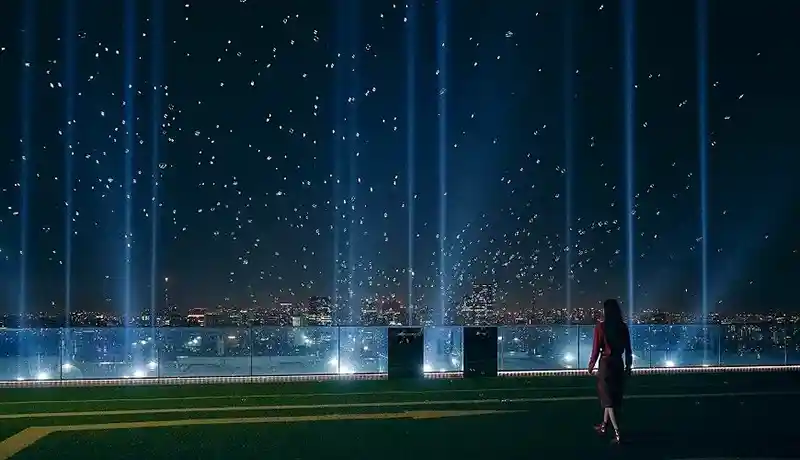 SHIBUYA SKY位於澀谷SCRAMBLE SQUARE 46樓,這次加入冬季點燈行列,帶來「Sparkling View」全新主題。遠眺澀谷壯觀街景的同時,戶外屋頂展望設施「SKY STAGE」將化身天空畫布,發射白色光束組成「Sparkling Light Tree」,每天晚上7點後還有30分鐘燈光音樂秀,搭配飛舞的泡泡,讓人彷彿置身未來浪漫世界,徹底顛覆傳統聖誕溫暖燈飾的印象。